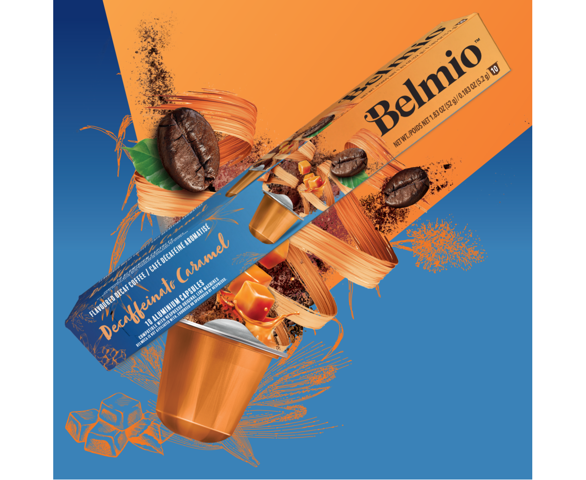 Belmio Decaffeinato Caramel 10бр Nespresso съвместими капсули безкофеиново кафе с вкус Карамел